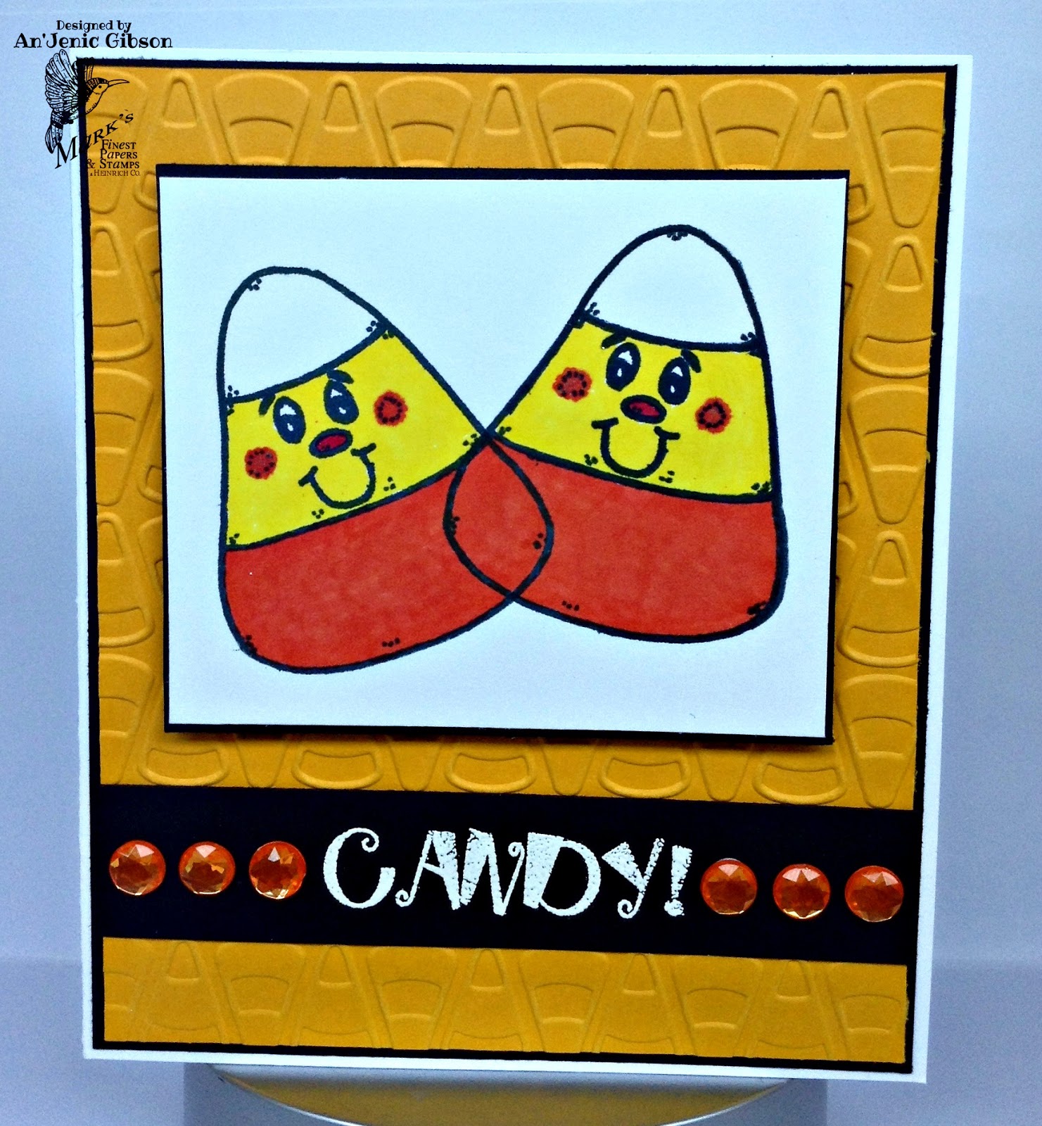 Welcome to day 3 of Mark's Finest Papers Stamp Release. Today we are show casing "What a Scream" stamp set. Its perfect for Halloween. We have some very cute and fun images that would be perfect for younger kids. I really had fun playing with the candy corn. It has the cuties face.