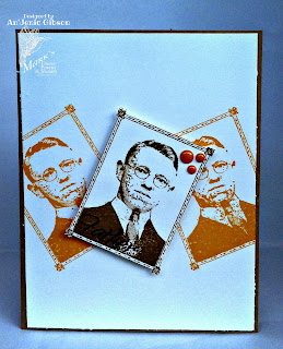 Up first is a fun Father's Day card. I know what am I thinking about Father's Day when were celebrating Christmas. Well as I begin to stamp the image I could only think of a my dad and father's day. And I must say I'm not too found of the sentiments for this stamp set so I pull out another stamp set by MFP called "" It had that fancy look so I went with it. I really love the frame of around the man and know I wanted to show case it.